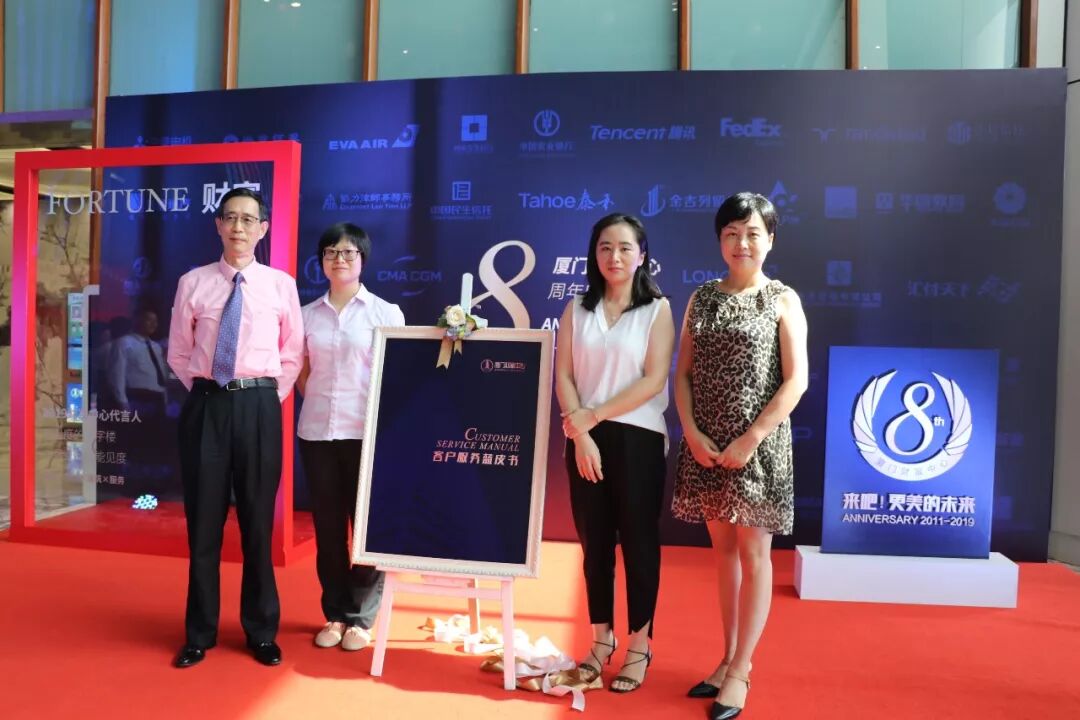 緊接著,借由此次8周年慶之際,在現(xiàn)場所有來賓的共同見證下,恒興集團資管理部總經(jīng)理盧海、恒興集團資管理部副總宋維超和財富中心入駐企業(yè)中國農(nóng)業(yè)銀行思明支行營業(yè)部負責人孫敏霞、達飛輪船(中國)有限公司廈門分公司行政部經(jīng)理郝凌云共同為全新改版升級的《廈門財富中心-客戶服務藍皮書》揭幕,廈門財富中心此次以“溫度”為前瞻視角,將物業(yè)服務品質(zhì)全面升級,擴展服務空間,不斷創(chuàng)造新服務、新感受,打造高端商務人士夢想中的有溫度的寫字樓!
