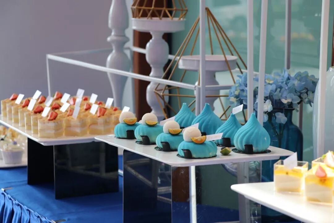 舞臺上的主要環(huán)節(jié)結(jié)束,但現(xiàn)場歡樂的氣氛并沒有結(jié)束,”FUTURE & FORTUNE”藍色下午茶在大堂熱鬧上映。在優(yōu)雅的音樂聲中,大堂處處都飄散著糕點香氣,現(xiàn)場人頭攢動,熱鬧非凡,大家拿著餐盤,悉心品味各色精美的茶歇,暫別工作煩憂,愉快的享受著這一輕松時刻。