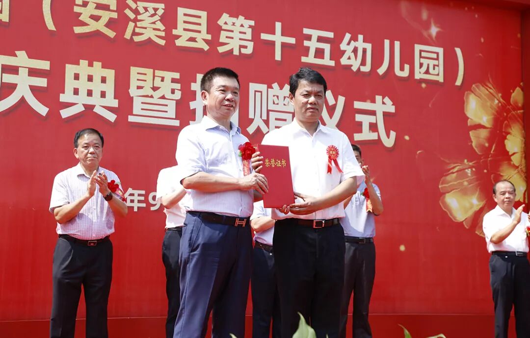這標志著廈門恒興集團正式將鐵錚幼兒園暨安溪第十五幼兒園捐贈給安溪縣蓬萊鎮(zhèn)政府,兌現(xiàn)了企業(yè)的莊嚴承諾。