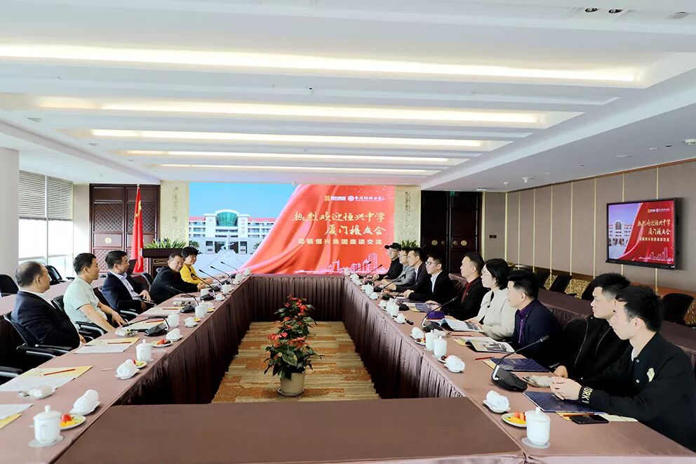 走進(jìn)集團(tuán)總部,就感受到了恒興人的活力與朝氣,在會(huì)場(chǎng)的LED大屏幕上寫著“熱烈歡迎恒興中學(xué)廈門校友會(huì)蒞臨恒興集團(tuán)座談交流”,讓大家感受到了集團(tuán)的用心,猶如家的溫暖。期待已久的時(shí)刻終于來臨。10點(diǎn)整,柯董從百忙中抽空接待了大家,隨后在會(huì)議室進(jìn)行面對(duì)面交流座談。