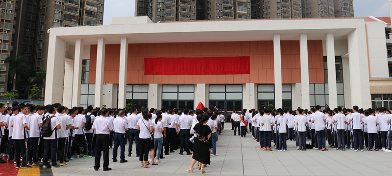 大會(huì)開始前,進(jìn)行了鐵錚大禮堂的揭牌儀式和柯鐵錚銅像揭幕儀式。林文土?xí)浶冀遗苾x式之后,在緩緩的禮樂聲中,柯希平董事長和李育民校長揭下了大禮堂和柯鐵錚銅像的紅幕布,現(xiàn)場響起了陣陣熱烈的掌聲。500多名學(xué)生代表和200多位老師共同見證了這個(gè)莊嚴(yán)的時(shí)刻。