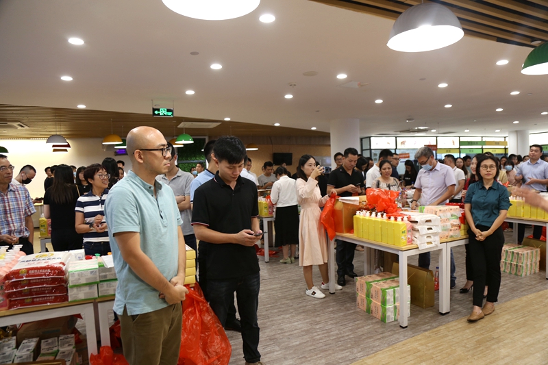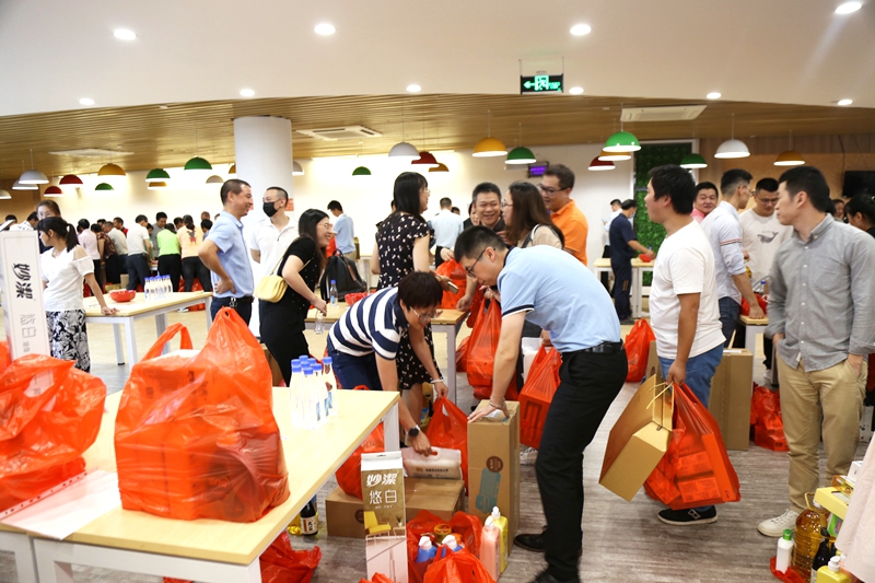博到狀元的同事,不忘在攝影師的鏡頭下,記錄著“紅4”骰子點(diǎn)數(shù)和喜悅的笑顏?;顒?dòng)最后,桌上的各項(xiàng)禮品被同事們“刮分”干凈,大家提著紅色購物袋滿載而歸。即使沉甸甸,這也是值得開心和興奮的甜蜜小負(fù)擔(dān)!