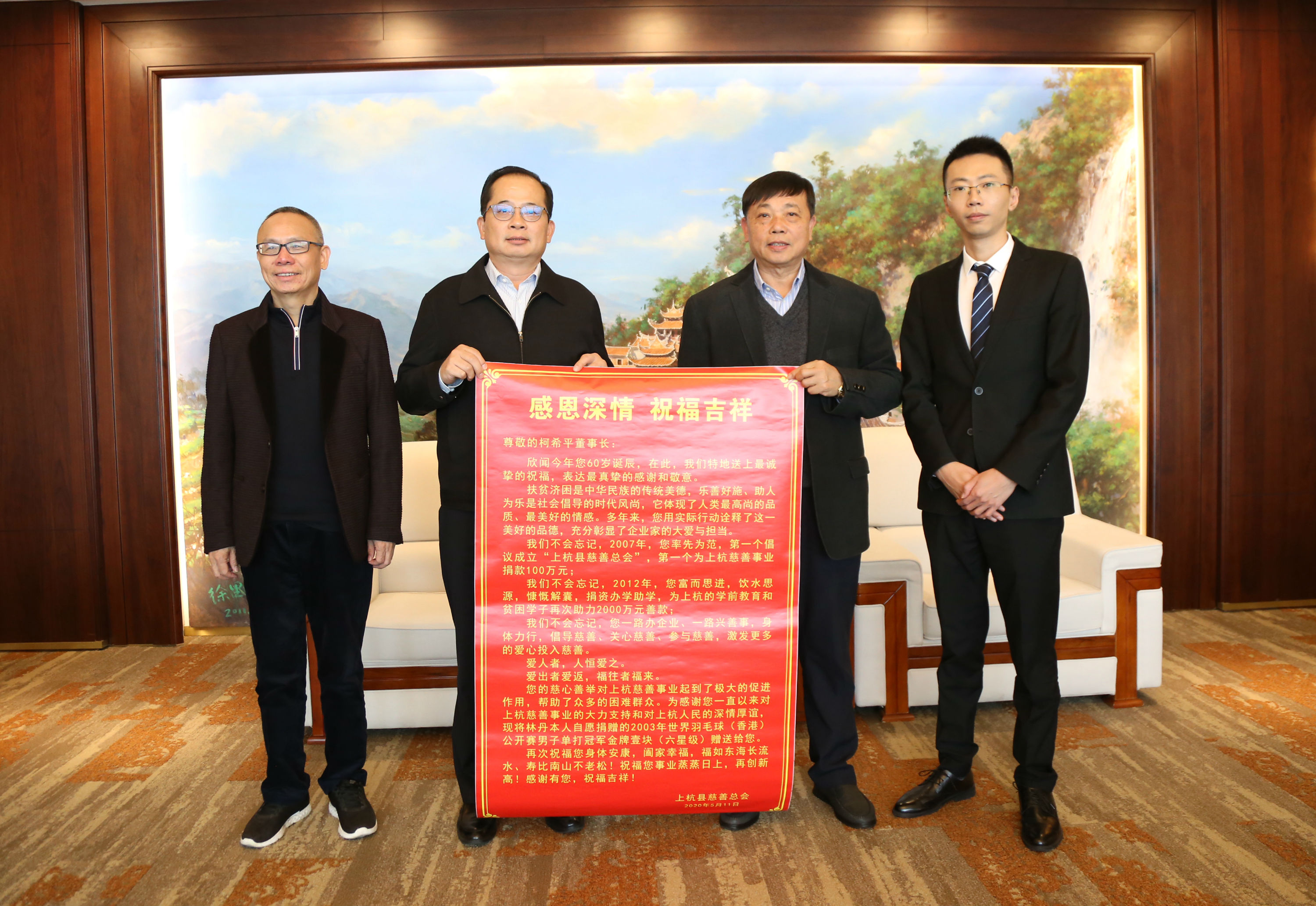 12月10日上午,上杭縣慈善總會(huì)一行,攜“感恩深情,祝福吉祥”主題的大海報(bào),向廈門恒興集團(tuán)和董事長(zhǎng)柯希平先生表達(dá)謝意,其中記錄了恒興集團(tuán)和上杭縣慈善總會(huì)的緣分:“2007年,柯希平董事長(zhǎng)倡議成立上杭縣慈善總會(huì),為上杭慈善事業(yè)捐款100萬(wàn)元;2012年,柯希平董事長(zhǎng)飲水思源,為上杭的學(xué)前教育和貧困學(xué)子再次助力2000萬(wàn)元善款,用實(shí)際行動(dòng)彰顯企業(yè)家的大愛(ài)與擔(dān)當(dāng)?!?/strong>
