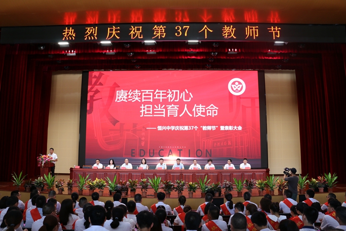 當(dāng)天下午3點,恒興中學(xué)鐵錚大禮堂座無虛席,伴隨著莊嚴(yán)的國歌聲,慶祝教師節(jié)暨表彰大會拉開序幕。大會表彰了2020-2021學(xué)年度“三十佳教師”、“優(yōu)秀教師”、“優(yōu)秀班主任”、“優(yōu)秀員工”、“優(yōu)秀共產(chǎn)黨員”,校董會頒發(fā)了中高考獎教金。