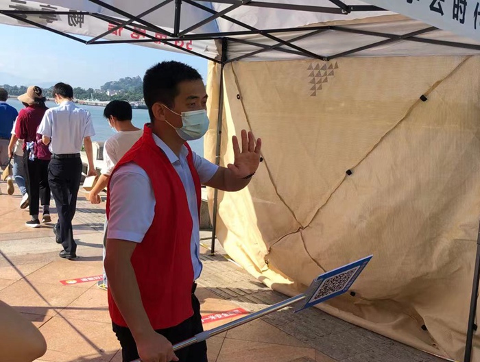 疫情當(dāng)前,真的很希望自己能做點(diǎn)什么,正好看到集團(tuán)招募志愿者,就參加了。我做志愿者的那天是9月15日下午,在那做核酸引導(dǎo)員,那會(huì)兒因?yàn)橄铝艘粓鲇?,已?jīng)算很涼快。我自己去海濱公園點(diǎn)進(jìn)行采樣時(shí),看到很多醫(yī)護(hù)人員特別辛苦,天氣熱太陽曬,他們都是汗流浹背的,很心疼。所以我知道那些工作人員比我支援的幾個(gè)小時(shí)辛苦多了。