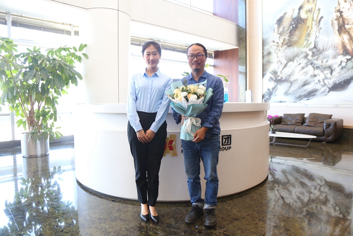 當天下午,集團前臺工作人員為楊函憬送上鮮花,迎接他的到來。會議室也布置了許多花磚元素的美食和冰箱貼,供到會同事品嘗和領取。