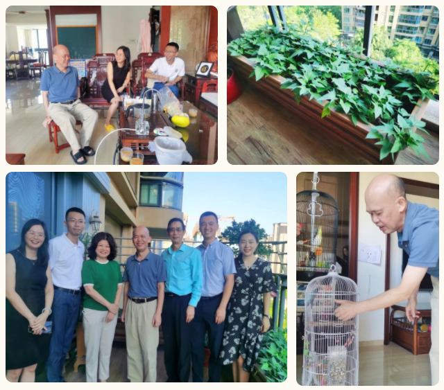 集團(tuán)原副董事長(zhǎng)羅映南家中,兩只鸚鵡吸引了大家注意,原來(lái)羅董在家逗鳥、種菜,在都市一隅醉夢(mèng)“田園光景”,好不快活。據(jù)羅董太太介紹,本學(xué)期進(jìn)入華師希平雙語(yǔ)學(xué)校就讀的大孫女,已化身學(xué)校小小宣傳員,在小區(qū)內(nèi)逢人便介紹希平學(xué)校老師們有趣的教學(xué)方法,分享她在校園感受到的快樂。言談中,皆是兒孫繞膝盡享天倫的福氣。