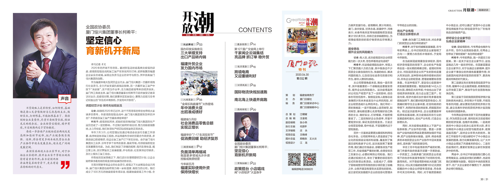 2020年的開端不同尋常。面對新型冠狀病毒肺炎疫情的肆虐,疫情防控阻擊戰(zhàn)和復(fù)工復(fù)產(chǎn)攻堅戰(zhàn)同時打響,愛拼敢贏的福建企業(yè)家眾志成城,展現(xiàn)出負責任企業(yè)的堅守與擔當,其中就有廈門恒興集團的身影。